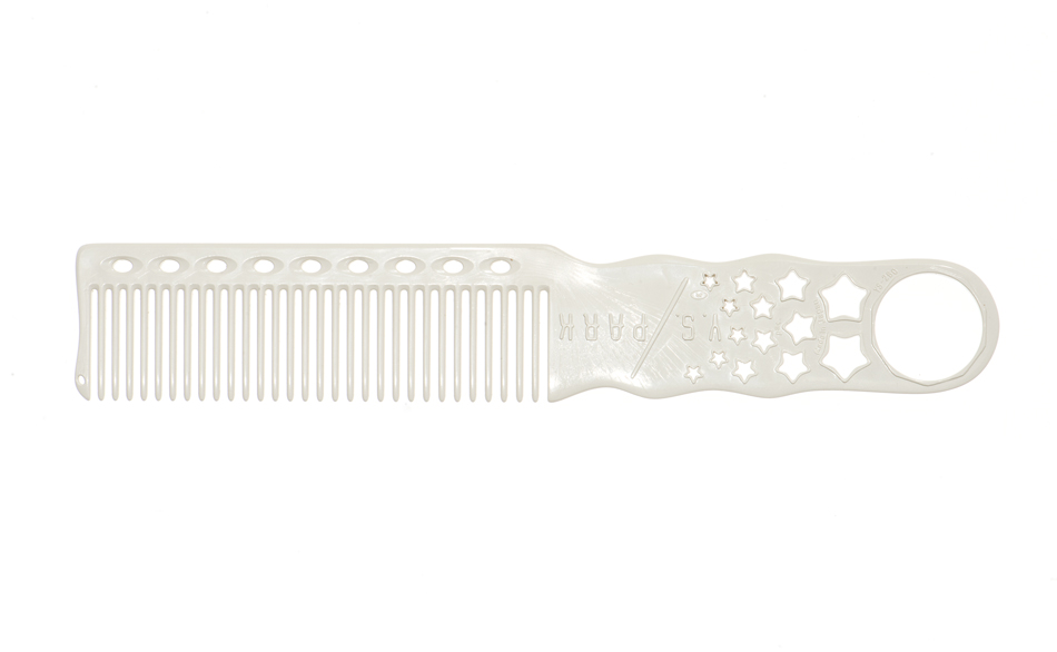 Clipper & cutting hybrid comb for barbering. Features gradually pitched teeth for maintaining an assured and even hold of hair between the comb teeth, textured ergonomic grip and rigidly constructed teeth.